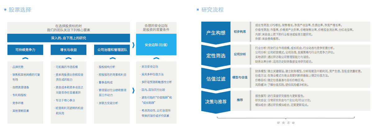 透過基本面的研究推動(dòng)投資。強(qiáng)調(diào)對(duì)公司及行業(yè)基本面的深度理解與研究價(jià)值的創(chuàng)造,并透過有效的流程尋找清晰完整的投資邏輯與高度信心的投資標(biāo)的。
